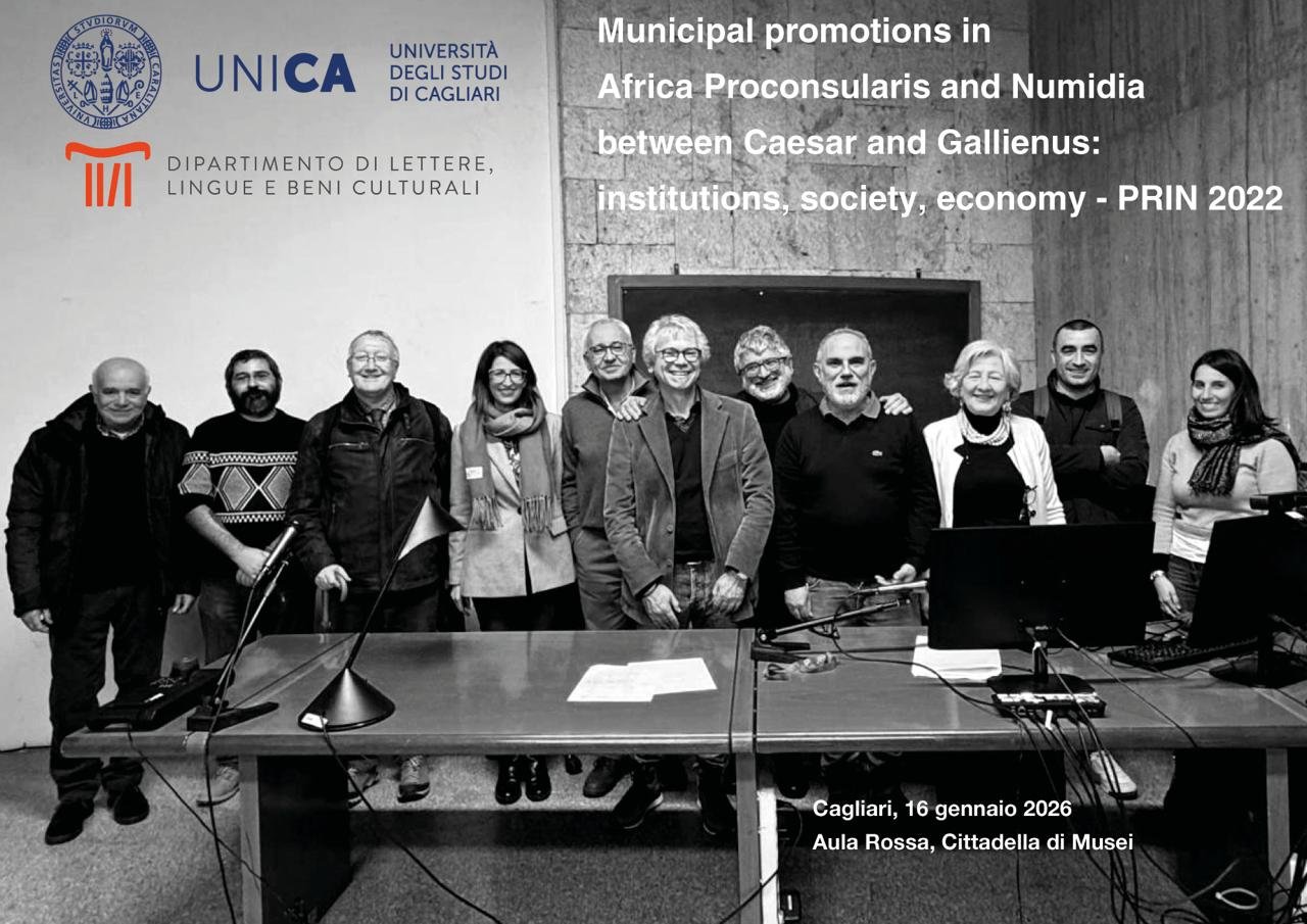 Municipal promotions in Africa Proconsularis and Numidia between Caesar and Gallienus: institutions, society, economy Principal InvestigatorProf. Antonio IbbaUnità di RicercaProf.ssa Marina Sechi Nuvole Prof.ssa Rosanna OrtuProf. Alessandro TeatiniDott.ssa Anna Paola Mosca Progetto PRIN 2022 PNRRIl progetto si propone di aggiornare il quadro delle promozioni municipali fra il 46 a.C. e il 268 d.C. nella vasta area fra Numidia e Tripolitania denominata durante il I-II secolo d.C. come Africa Proconsolare, di analizzare la società che ruotava intorno ai processi di municipalizzazione, che talora li sponsorizzava con ingenti investimenti e in cambio ne riceveva benefici politico-economici, di monitorare l’impatto che la promozione poteva avere sull’economia locale, sul decoro urbano, sulla riorganizzazione del paesaggio o viceversa le spinte che economiche e sociali che potrebbero aver ispirato o accompagnato quel processo Tavola Rotonda PRIN Cagliari - 16/01/2026 Convegno Internazionale Sassari 10-12 settembre 2025 Workshop Catania 26-27 febbraio 2025 Sintesi attività svolte (settembre 2023-febbraio 2025) Lucia Rainone, The Municipalization in Roman Africa: towards an update, CaSteR 9 (2024) Volume "Un quadro generale" a cura di Antonio Ibba e Antonio M. Corda The Municipalization in Roman Africa: towards an update Naviga la sezione Municipal promotions in Africa Proconsularis and Numidia between Caesar and Gallienus: institutions, society, economy